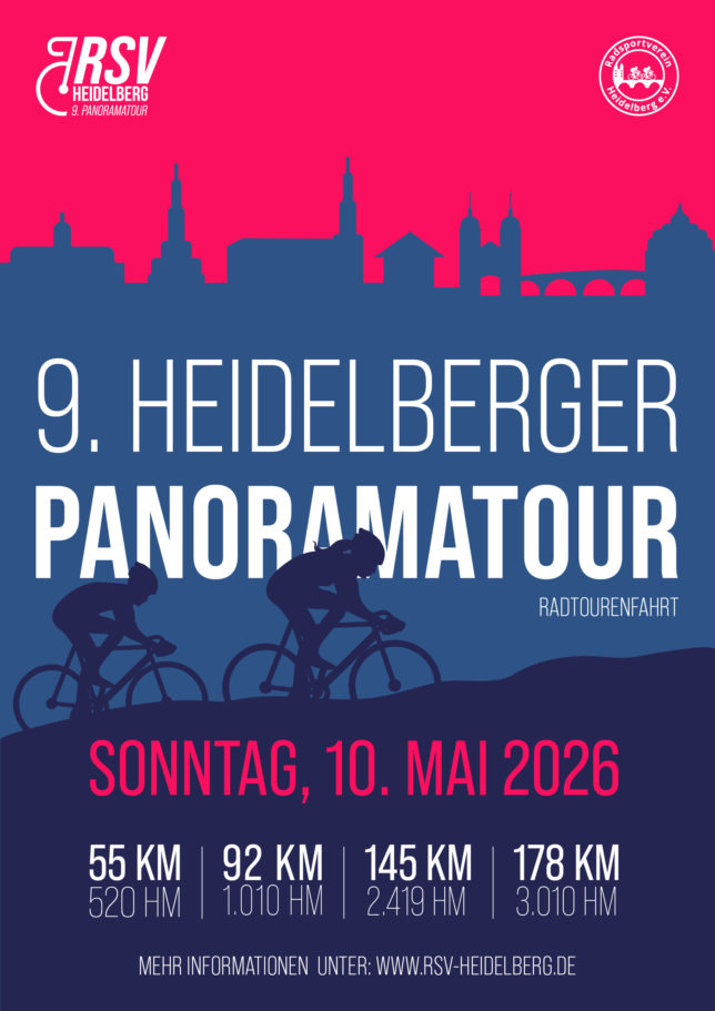 9. Heidelberger Panoramatour am 10. Mai 2026 Steile Anstiege, weite Ausblicke und echtes Radsport-Feeling: Die Heidelberger Panoramatour geht in die nächste Runde! Am 10. Mai 2026 lädt Rennbericht – 76. Großer Preis von Mehlingen Am 2. August 2025 starteten wir für den RSV Heidelberg beim Großen Preis von Mehlingen. Im ersten Rennen des Tages Rennbericht – Weinfestkriterium Roschbach 28.07.2025 Montagabendrennen in der Pfalz sind immer etwas Besonderes. So war auch das Weinfestkriterium in Roschbach dieses Jahr wieder eine sehr Bericht zur 8. Heidelberger Panoramatour 🚴♂️ 8. Heidelberger Panoramatour – Regen? Egal! Stimmung? Großartig! Was für ein Radsport-Tag! Am Sonntag, den 25. Mai 2025, haben sich Die 8. Heidelberger Panoramatour am 25.05.2025 – Erlebe den Odenwald auf dem Rennrad! Bist du bereit für ein unvergessliches Radsportabenteuer? Die 8. Heidelberger Panoramatour lädt dich ein, die atemberaubende Landschaft des Odenwaldes zu Bericht zum 3. Heidelberger Cyclocrossrennen Bei der dritten Auflage unseren Cyclocrossrennens waren einige RSVler:innen am Start. Vadir ist bereits ein alter Hase im Gelände, Kathrin 1 2 3 … 29 Next »